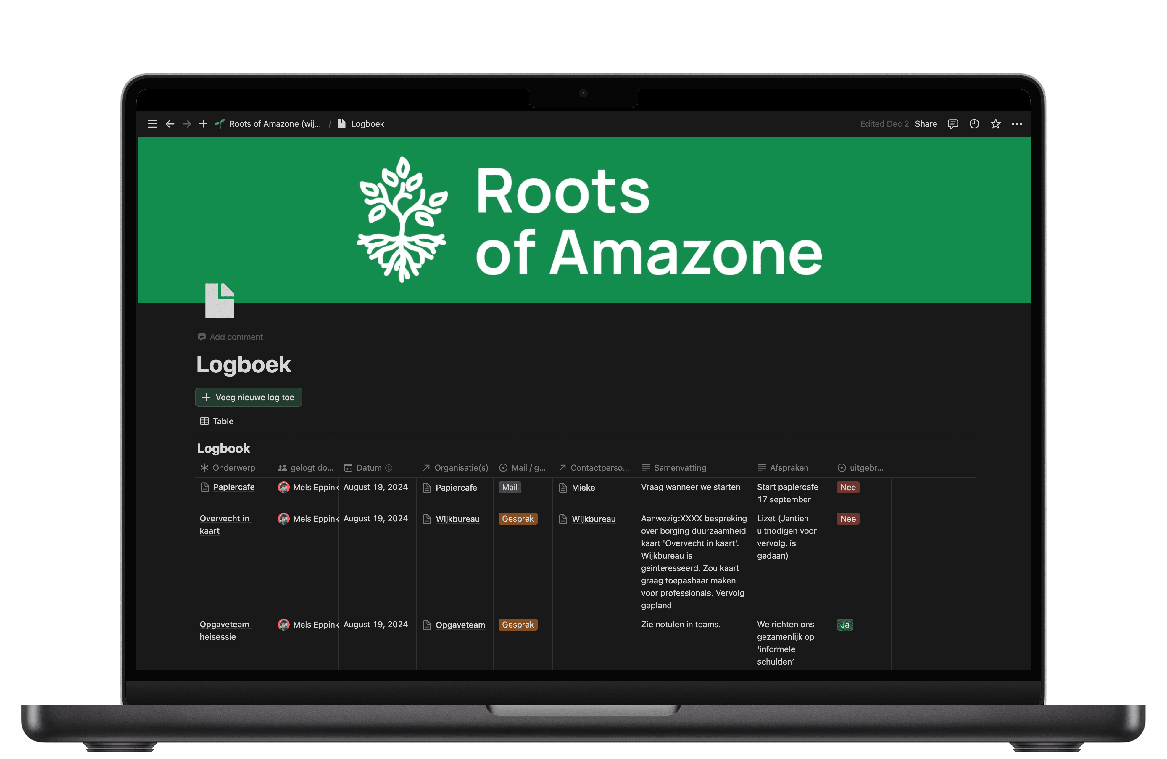 Roots of Amazone is een systeem dat helpt om de kern van gesprekken eenvoudig te formuleren en collega’s op de hoogte te houden van de laatste ontwikkelingen. Dankzij Roots of Amazone zijn professionals al goed geïnformeerd over wat er speelt, waardoor dubbele vragen worden voorkomen en het vertrouwen onder bezoekers toeneemt.